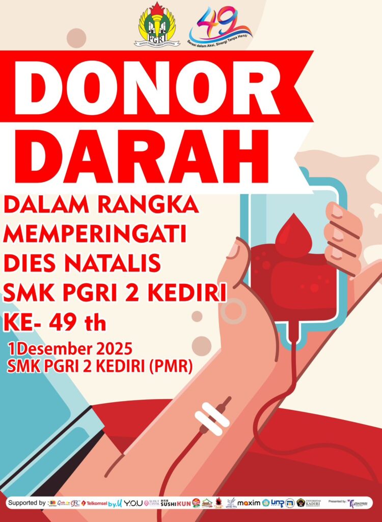 Dalam semangat berbagi dan kepedulian sosial, SMK PGRI 2 Kediri akan menyelenggarakan kegiatan Donor Darah sebagai bagian dari rangkaian peringatan Dies Natalis ke-49 sekolah.
